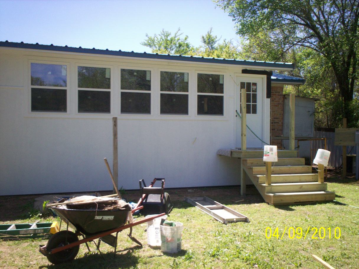 Oh everyday changes~ Here are the new back steps and the siding is up on the back part of our house.